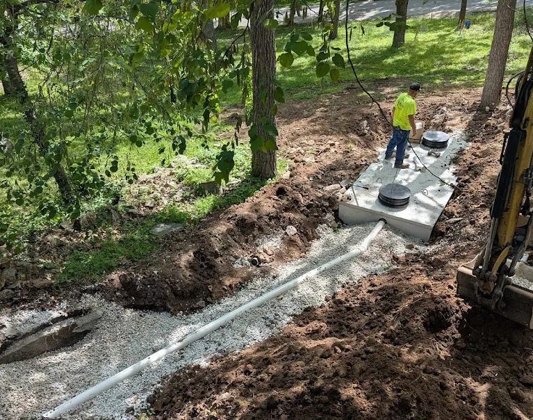 - Excavation of the tank area and drain field
